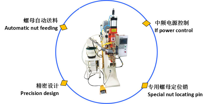służy do automatycznego podawania nakrętek i zgrzewania punktowego do blachy żelaznej lub rury żelaznej, co jest wydajne, oszczędzające czas i pracochłonne.